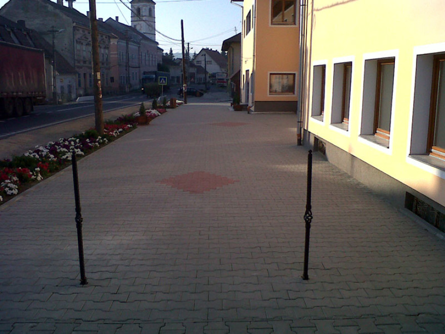 A járdásítás során sikerült 3700 m2 járdafelületet felújítani. Emellett kukákat, padokat, virágos ládákat helyeztünk ki, továbbá kovácsoltvas korlátok díszítik Ditró központját.