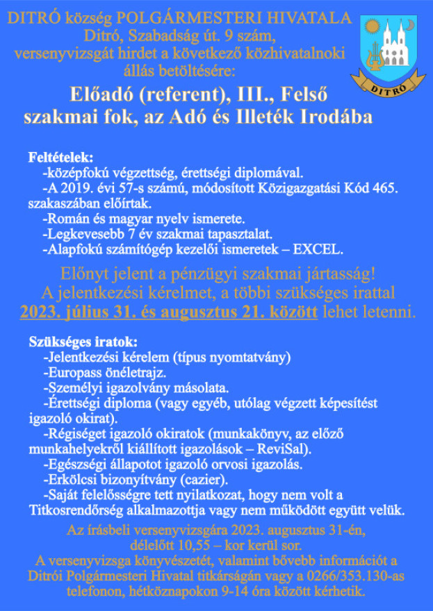 Anunt - concurs de angajare
